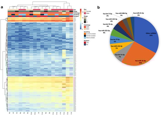 - Kaduthanam, S.; Gade, S.; Meister, M.; Brase, J.C.; Johannes, M.; Dienemann, H.; Warth, A.; Schnabel, P.A.; Herth, F.J.; Sültmann, H.; et al. Serum miR-142-3p is associated with early relapse in operable lung adenocarcinoma patients. Lung Cancer 2013, 80, 223–227. [Google Scholar] [CrossRef]
