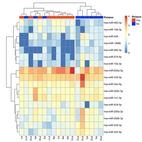 | miRNA Name | Log Fold Change | p-Value | Average TMM in Relapsed Patients | Average TMM in Non-Relapsed Patients |
