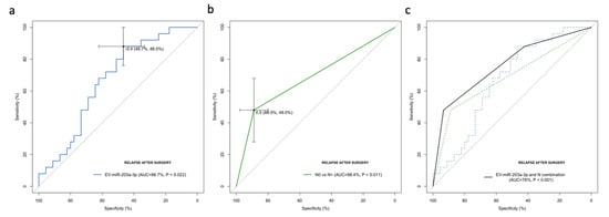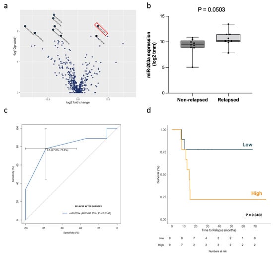 2.2.5. EV-miR-203a-3p Levels Validated as Relapse Biomarkers in the Validation Cohort
