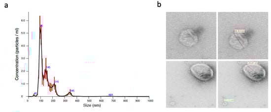 - Théry, C.; Witwer, K.W.; Aikawa, E.; Alcaraz, M.J.; Anderson, J.D.; Andriantsitohaina, R.; Antoniou, A.; Arab, T.; Archer, F.; Atkin-Smith, G.K.; et al. Minimal information for studies of extracellular vesicles 2018 (MISEV2018): A position statement of the International Society for Extracellular Vesicles and update of the MISEV2014 guidelines. J. Extracell. Vesicles 2018, 7, 1535750. [Google Scholar] [CrossRef] [Green Version]