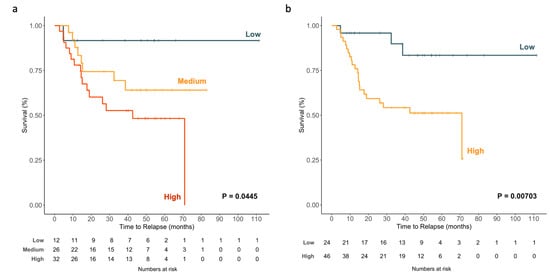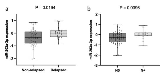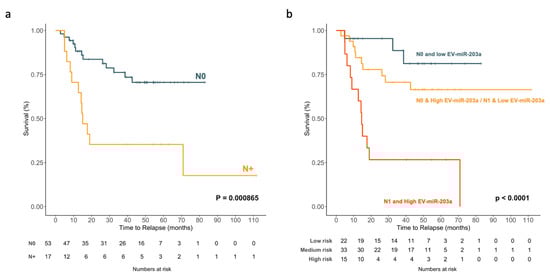 2.2.4. TDV EV-miR-203a-3p Expression Is Associated with N and Relapse