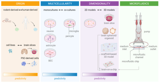 - Katt, M.E.; Shusta, E.V. In vitro models of the blood-brain barrier: Building in physiological complexity. Curr. Opin. Chem. Eng. 2020, 30, 42–52. [Google Scholar] [CrossRef] [PubMed]