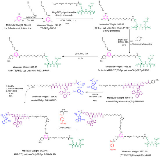 2.1.2. Synthesis of [19F]F-TZ(PSMA)-LEGU-TLR7