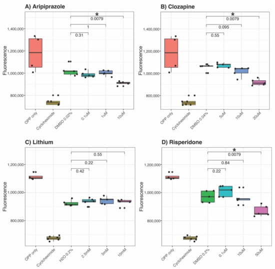 - Brandão-Teles, C.; de Almeida, V.; Cassoli, J.S.; Martins-de-Souza, D. Biochemical Pathways Triggered by Antipsychotics in Human Oligodendrocytes: Potential of Discovering New Treatment Targets. Front. Pharmacol. 2019, 10, 186. [Google Scholar] [CrossRef]