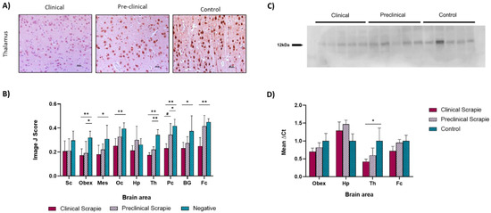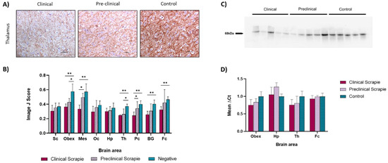 2.2. NfL Expression Is Downregulated in Most Brain Areas of Scrapie-Infected Sheep