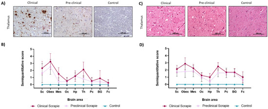 2.3. Scrapie-Related Neuropathological Features in Sheep and Correlation with Ng and NfL Protein Expression