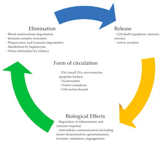 In addition to the participation of cirDNA in intercellular communication, regulation of inflammation, and the immune system response, various forms of DNA circulation have been described to affect pathophysiological processes associated with the development of malignant neoplasms.