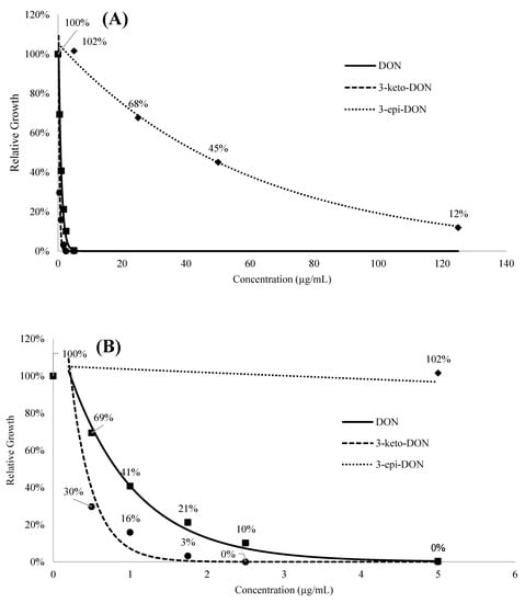 | (B) 3-keto-DON concentration (µg/mL) | 0 | 21.75 ± 3.03 a | 14.57 ± 2.74 a |
