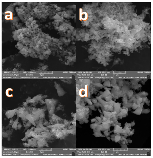 The morphology of the materials was observed by scanning electron microscopy (Tescan, MIRA 3LMU, LDN, UK) operated at 20 kV. High-resolution images were acquired using a high-resolution transmission electron microscope (Jeol microscope, JEM-ARM200F, Boston, MA, USA.) operated at 200 kV. The resulting images were analyzed using Gatan Micrograph software v. 3.7.0 (Pleasanton, CA, USA).