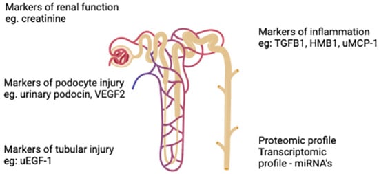 Based on this, the demand for the identification of new biomarkers that can reflect kidney damage and help in the decision to intervene is urgent. In addition, new biomarkers could contribute to therapeutic efficacy monitoring and help in developing new drugs that directly intervene in the disease pathways, such as anti-microRNA-21 and anti-endothelin receptors, as recently reported in [24,53].