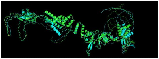 - Jumper, J.; Evans, R.; Pritzel, A.; Green, T.; Figurnov, M.; Ronneberger, O.; Tunyasuvunakool, K.; Bates, R.; Žídek, A.; Potapenko, A.; et al. Highly accurate protein structure prediction with AlphaFold. Nature 2021, 596, 583–589. [Google Scholar] [CrossRef]