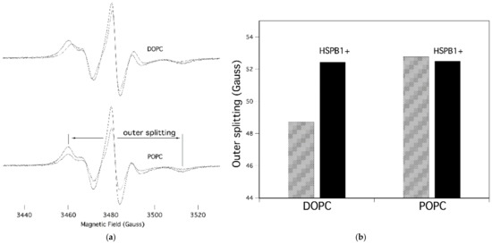 In recent decades, spin-label EPR spectroscopy has become a useful technique for studying lipids, biological membranes, and lipid–protein interactions. We utilized this method to determine the effect of HSPB1 on the rotational mobility of lipids in model membranes.