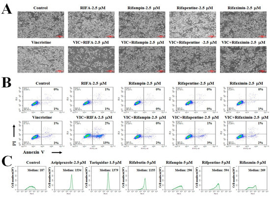 2.3. Rifabutin Causes Dose-Dependent Increases in Cytotoxicity in VIC-Treated KBV20C Cells by Inducing Early Apoptosis