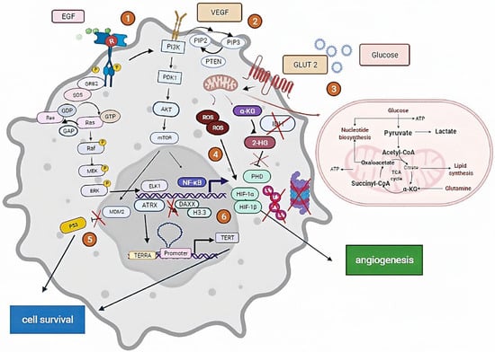 The most common genetic alterations present in approximately 57% of glioblastomas are mutations, alternative splicing, rearrangements, and the focal ample of EGFR [].