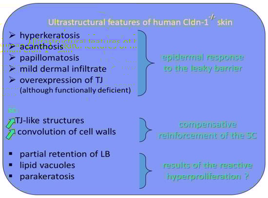 - Furuse, M.; Hata, M.; Furuse, K.; Yoshida, Y.; Haratake, A.; Sugitani, Y.; Noda, T.; Kubo, A.; Tsukita, S. Claudin-based tight junctions are crucial for the mammalian epidermal barrier: A lesson from claudin-1-deficient mice. J. Cell Biol. 2002, 156, 1099–1111. [Google Scholar] [CrossRef] [PubMed]