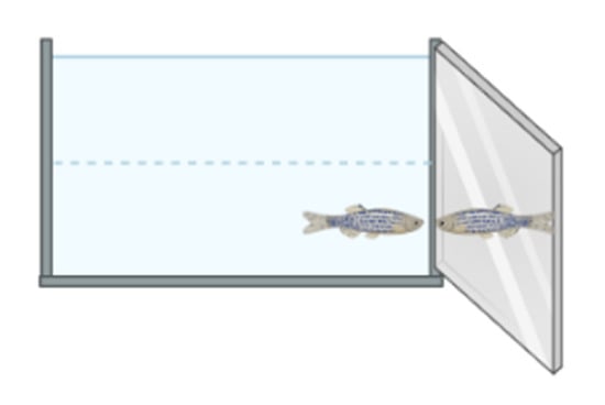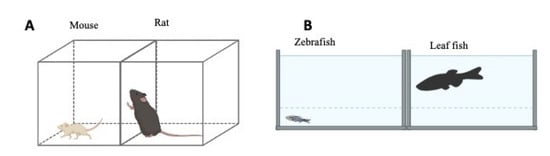 | Aggressiveness | Resident–Intruder Paradigm [65,88,89] | Mirror test [69,70,90] | |