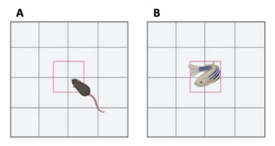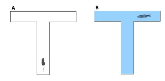 For a long period of time, mice were the most used animal models in behavioural neuroscience research. Indeed, mice are mammalian species and can display a variety of behaviours that resemble human diseases. In addition, the emergence of tools for direct genome manipulation has allowed scientists to easily investigate the impact of genes on development and behaviour [54,55]. However, recently, zebrafish, or Danio rerio, a freshwater fish that inhabits rivers in several places in Asia, has gradually attracted the interest of scientists. Indeed, zebrafish have become one of the preferred in vivo model organisms for studying diverse human diseases regarding developmental conditions [56,57], embryogenesis, regeneration, and behaviour [58,59,60]. In particular, zebrafish offers many advantages in the field of neuroscience, such as good tractability, ease of genetic manipulation, and amenability to high-throughput screens. Furthermore, zebrafish embryos and larvae are transparent, making them an excellent system for analysing developmental processes and neural signalling in vivo.
