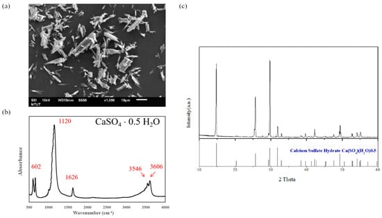 2.1. The Synthesis of Calcium Sulfate Hemihydrate (CSH, CaSO4·0.5H2O)