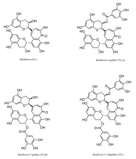 76. Pereira-Caro, G.; Moreno-Rojas, J.M.; Brindani, N.; Del Rio, D.; Lean, M.E.J.; Hara, Y.; Crozier, A. Bioavailability of Black Tea Theaflavins: Absorption, Metabolism, and Colonic Catabolism. J. Agric. Food Chem. 2017, 65, 5365–5374. [Google Scholar] [CrossRef]