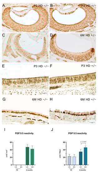 - Wilson, P.O.; Barber, P.C.; Hamid, Q.A.; Power, B.F.; Dhillon, A.P.; Rode, J.; Day, I.N.; Thompson, R.J.; Polak, J.M. The immunolocalization of protein gene product 9.5 using rabbit polyclonal and mouse monoclonal antibodies. Br. J. Exp. Pathol. 1988, 69, 91–104. [Google Scholar] [PubMed]