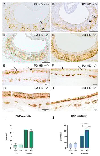 - Witt, M.; Thiemer, R.; Meyer, A.; Schmitt, O.; Wree, A. Main Olfactory and Vomeronasal Epithelium Are Differently Affected in Niemann-Pick Disease Type C1. Int. J. Mol. Sci. 2018, 19, 3563. [Google Scholar] [CrossRef] [Green Version]