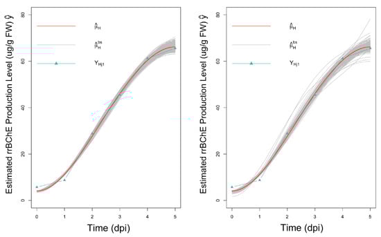 Therefore, in this study, we employ novel statistical approaches to tackle limited data to build trajectory models using previously reported bioreactor data [] to predict outcomes of interest, such as the “optimal time-to-harvest”, maximum rrBChE production level and maximum productivity. In addition, estimating the trajectory of the production level is a part of Quality by Design (QbD) [] that is essential in biomanufacturing where a computationally feasible statistical method is involved in modeling based on available data.