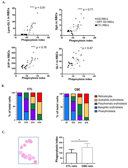 2.4. The Uptake of GD RBCs Correlates with Sphingolipids Overload