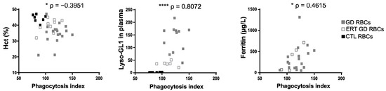 2.6. The Enhanced Phagocytosis of GD RBCs Correlates with Markers of Disease Activity