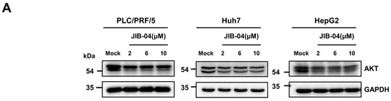 RNA sequencing was conducted using Macrogen Inc. (Seoul, Korea). RNA extracts from PLC/PRF/5 cells treated with DMSO or 6 µM JIB-04 for 24 h were subjected to cDNA library construction using a TruSeq Stranded mRNA LT Sample Prep Kit (Illumina, San Diego, CA, USA). The samples were checked for quality using FastQC v0.11.5 software and subjected to sequencing using a HiSeq 4000 sequencer (Illumina). The Kyoto Encyclopedia of Genes and Genomes (KEGG) database was used to determine the pathways of differentially expressed genes. The pathways were ranked using Fisher’s exact test with a threshold of significance set by p-value. The data discussed in this publication were deposited in NCBI’s Gene Expression Omnibus and are accessible under GEO series accession number GSE179345.