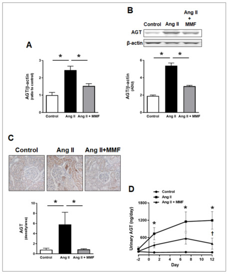 2.4. Effects of MMF on Intrarenal and Urinary AGT Levels