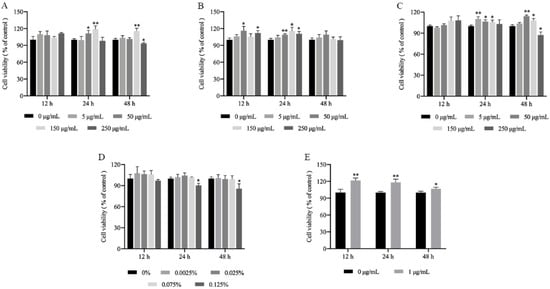 2.1. Cytotoxicity of the MLFs in RAW264.7 Cells