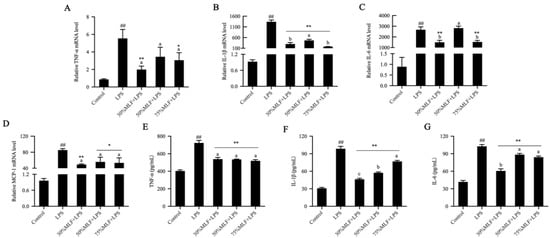 2.3. MLFs Inhibited Inflammatory Cytokine Secretion in LPS-Induced RAW 264.7 Cells