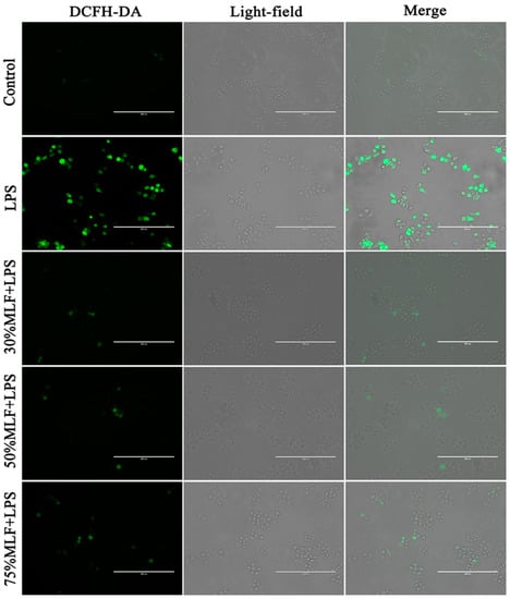 2.4. MLFs Inhibited ROS Production in LPS-Induced RAW 264.7 Cells