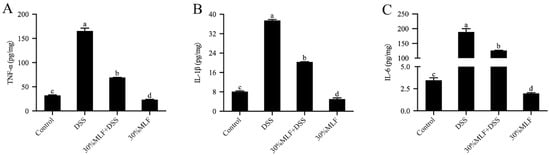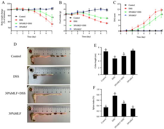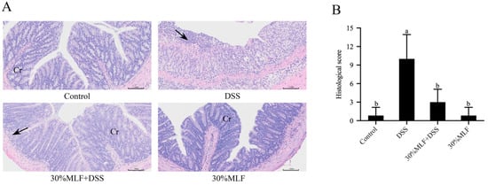 2.8. Treatment with 30%MLF Alleviated the Symptoms of DSS-Induced UC in Mice