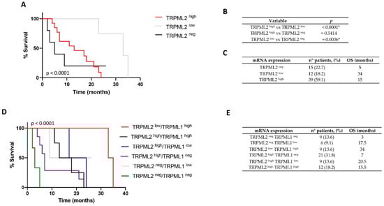 Santoni, G.; Maggi, F.; Amantini, C.; Arcella, A.; Marinelli, O.; Nabissi, M.; Santoni, M.; Morelli, M.B. Coexpression of TRPML1 and TRPML2 Mucolipin Channels Affects the Survival of Glioblastoma Patients. Int. J. Mol. Sci. 2022, 23, 7741. https://doi.org/10.3390/ijms23147741