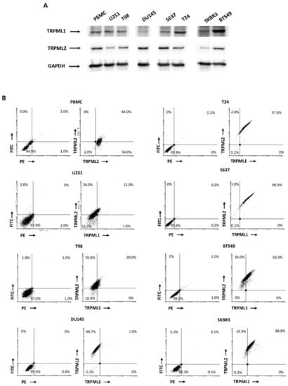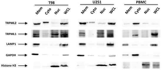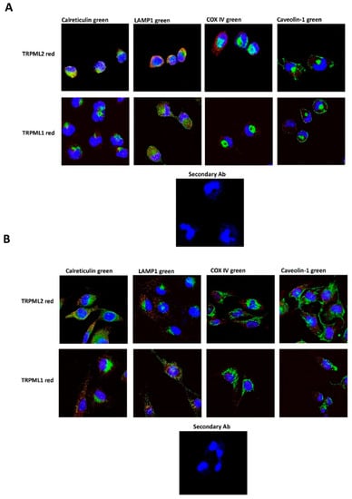 2.3. Coexpression of TRPML1 and TRPML2 Proteins inT98 and U251 Cells