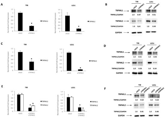 2.5. TRPML1 and TRPML2 Coregulation in T98 and U251 Cells