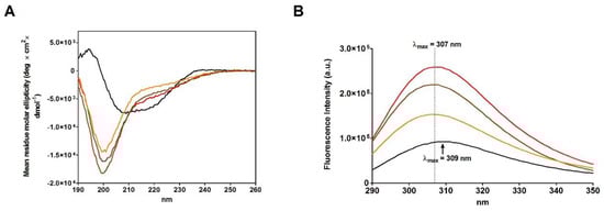 - Miles, A.J.; Ramalli, S.G.; Wallace, B.A. DichroWeb, a website for calculating protein secondary structure from circular dichroism spectroscopic data. Protein Sci. 2021, 31, 37–46. [Google Scholar] [CrossRef]