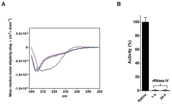 - Libonati, M.; Bertoldi, M.; Sorrentino, S. The activity on double-stranded RNA of aggregates of ribonuclease A higher than dimers increases as a function of the size of the aggregates. Biochem. J. 1996, 318, 287–290. [Google Scholar] [CrossRef] [Green Version]