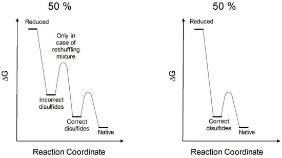 - Welker, E.; Wedemeyer, W.J.; Narayan, M.; Scheraga, H.A. Coupling of conformational folding and disulfide-bond reactions in oxidative folding of proteins. Biochemistry 2001, 40, 9059–9064. [Google Scholar] [CrossRef]