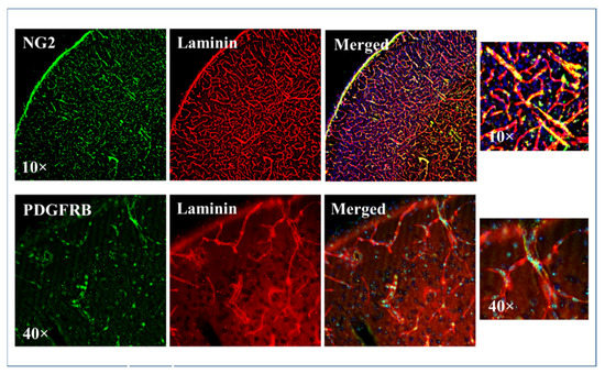 - Szabo, A.; Kalman, M. Disappearance of the post-lesional laminin immunopositivity of brain vessels is parallel with the formation of gliovascular junctions and common basal lamina. A double-labelling immunohistochemical study. Neuropathol. Appl. Neurobiol. 2004, 30, 169–177. [Google Scholar] [CrossRef]