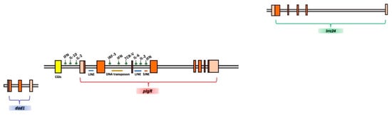 - Smit, A.F.A.; Hubley, R.; Green, P. RepeatMasker Open-3.0; 1996, Unpublished Data. Available online: https://www.repeatmasker.org/ (accessed on 8 July 2021).