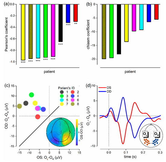 - Pott, J.; Jansonius, N.; Kooijman, A. Chiasmal coefficient of flash and pattern visual evoked potentials for detection of chiasmal misrouting in albinism. Doc. Ophthalmol. 2003, 106, 137–143. [Google Scholar] [CrossRef]
