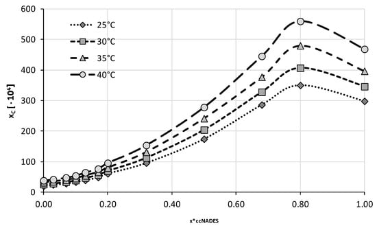 | [ChCl + xylitol + water] | 18.90; −9.93 | 4.35; −4.73 |