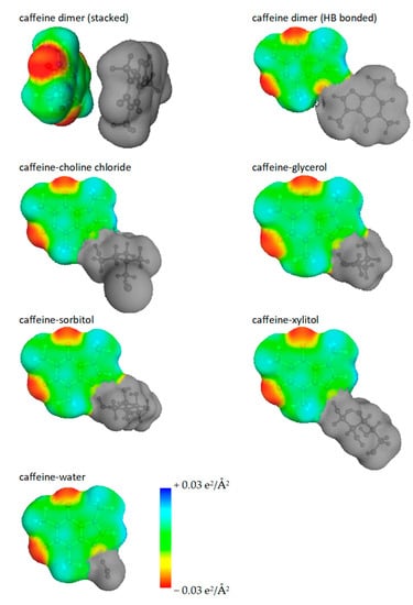 - Jeliński, T.; Kubsik, M.; Cysewski, P. Application of the Solute-Solvent Intermolecular Interactions as Indicator of Caffeine Solubility in Aqueous Binary Aprotic and Proton Acceptor Solvents: Measurements and Quantum Chemistry Computations. Materials 2022, 15, 2472. [Google Scholar] [CrossRef]