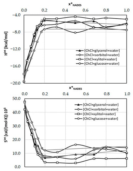 | [ChCl + glycerol + water] | 21.93; −10.63 | 9.00; −5.68 |