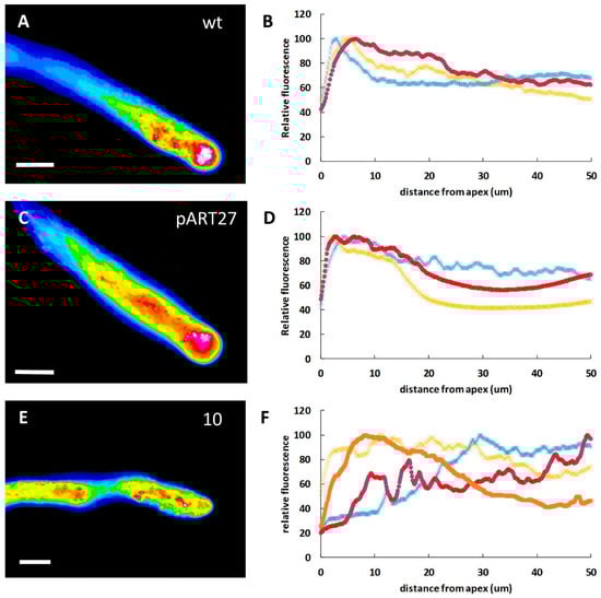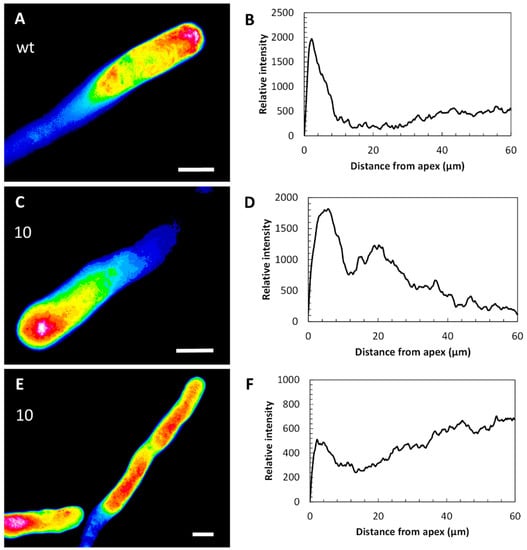 2.5. The pH Gradient in the Pollen Tube Is Partially Compromised