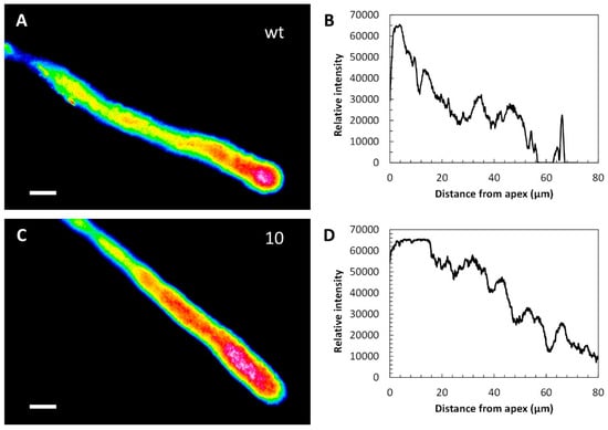 2.3. Calcium Ion Profile Is Altered in Pollen Tubes Expressing CcASP-RICH