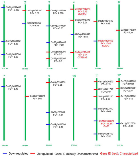 - Okada, A.; Okada, K.; Miyamoto, K.; Koga, J.; Shibuya, N.; Nojiri, H.; Yamane, H. OsTGAP1, a bZIP transcription factor, coordinately regulates the inductive production of diterpenoid phytoalexins in rice. J. Biol. Chem. 2009, 284, 26510–26518. [Google Scholar] [CrossRef] [Green Version]