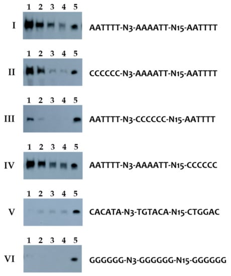 - Hellman, L.M.; Fried, M.G. Electrophoretic mobility shift assay (EMSA) for detecting protein-nucleic acid interactions. Nat. Protoc. 2007, 2, 1849–1861. [Google Scholar] [CrossRef]